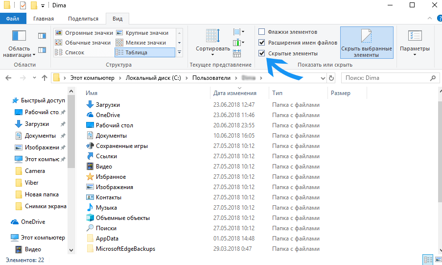 Разумеется, сначала нам нужно произвести включение скрытых папочек. Чтобы этого добиться:
