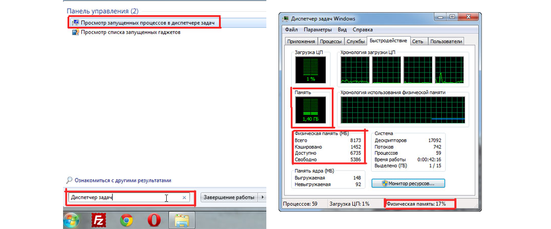В диспетчере задач необходимо войти во вкладку «Быстродействие». Здесь имеется возможность проанализировать, как именно загружена оперативная память, и количество доступной для работы свободной физической памяти в текущий момент времени.
