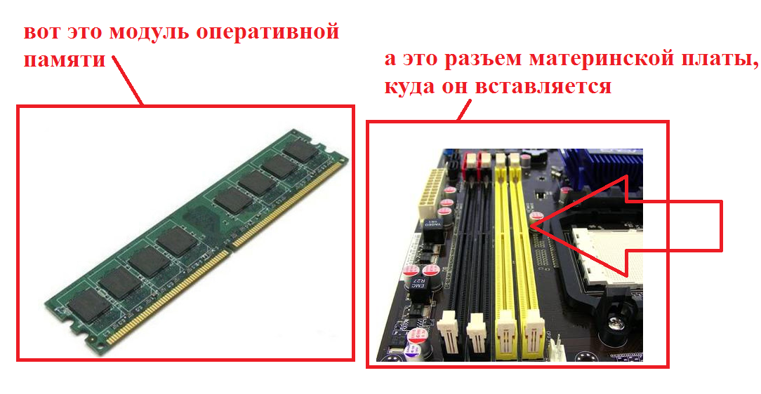 Начнем с того, что оперативная памяти (физически) представляет собой небольшую прямоугольную плату, которая вставляется в соответствующий разъем материнской платы.
