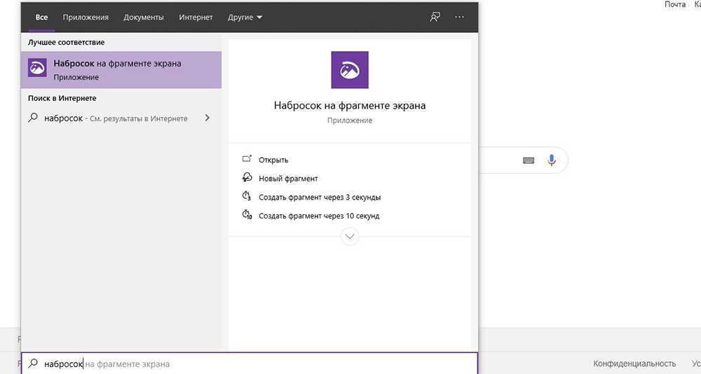 Инструмент «Набросок на фрагменте экрана», который можно найти через поиск Windows, позволяет сделать снимок выделенной области, выбранного окна или всего экрана. Более быстрый вариант вызова инструмента – комбинация клавиш Win+Shift+S.