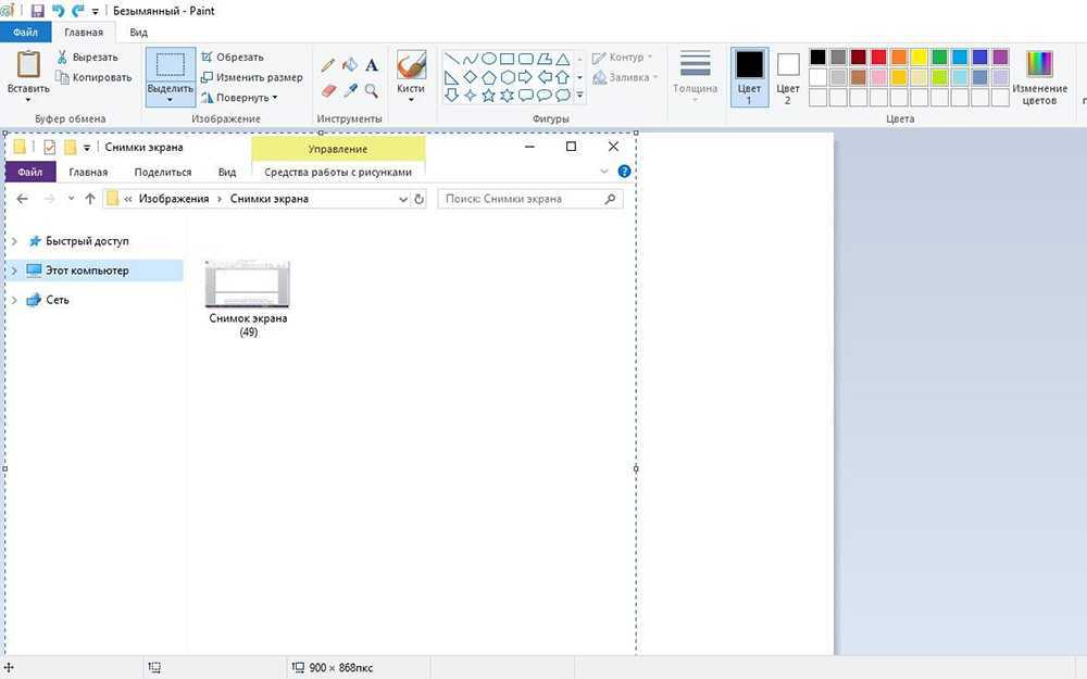 Если вам необходимо вырезать часть изображения экрана, проще всего сделать это в редакторе Paint.