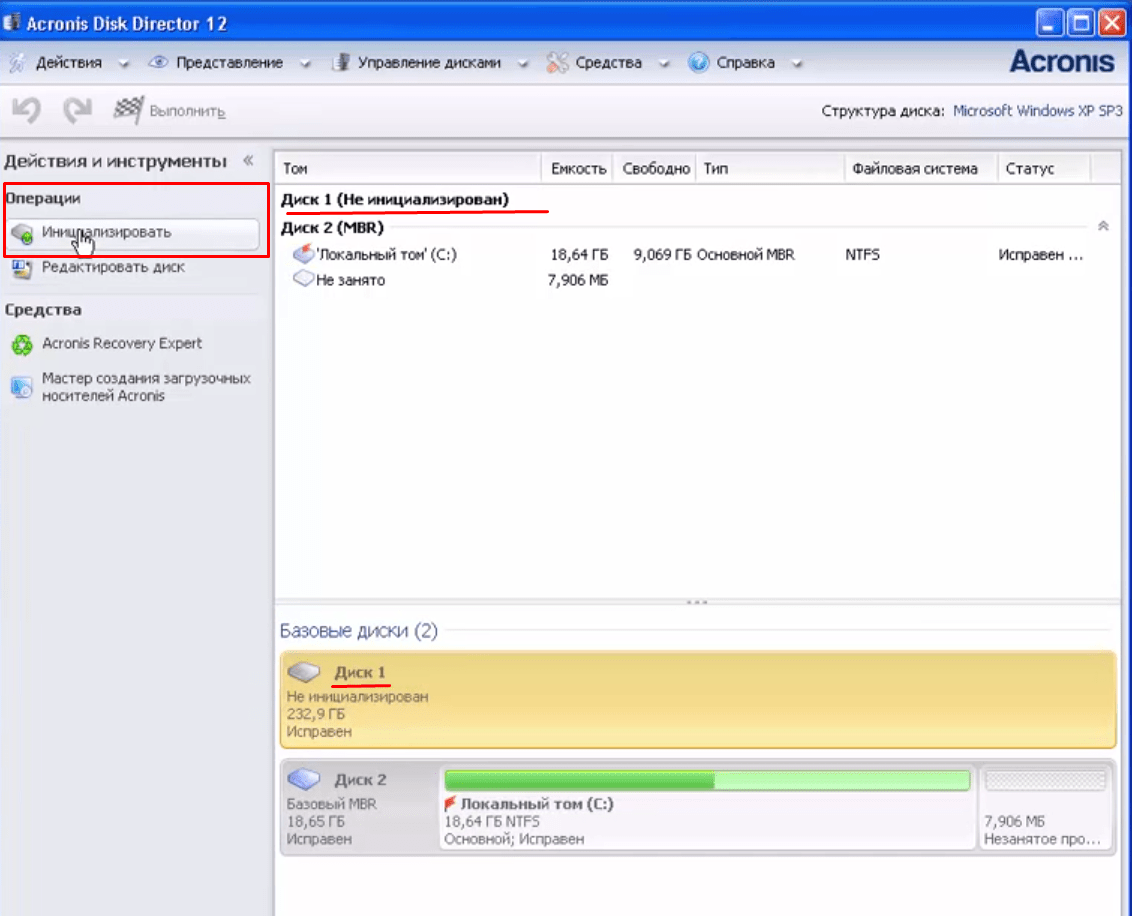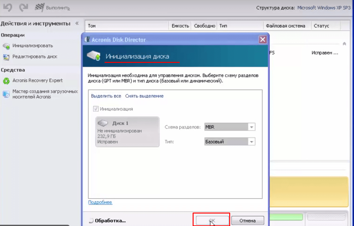 Чтобы инициализировать диск нажимаем соответствующую кнопку…
