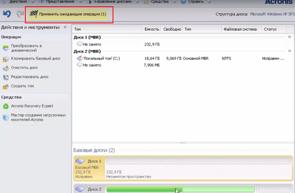 После всех процедур, осмотрите – соответствует ли структура вашего ПК тому, что вы хотели. И если да, то вам необходимо применить ожидающие правки. Это можно сделать в пару кликов в верхней части программы: