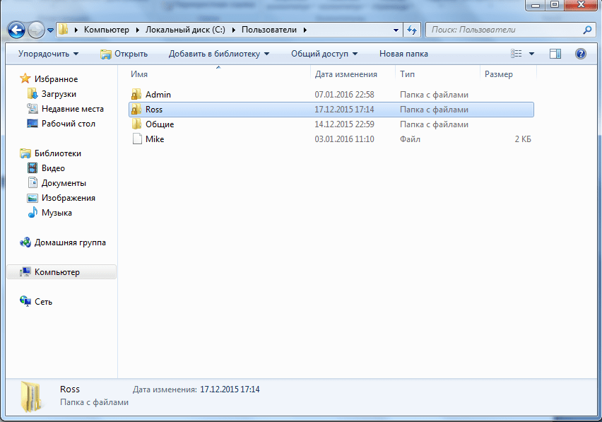 - Зайти в папку «Пользователи», дважды щелкнув по ней левой кнопкой.