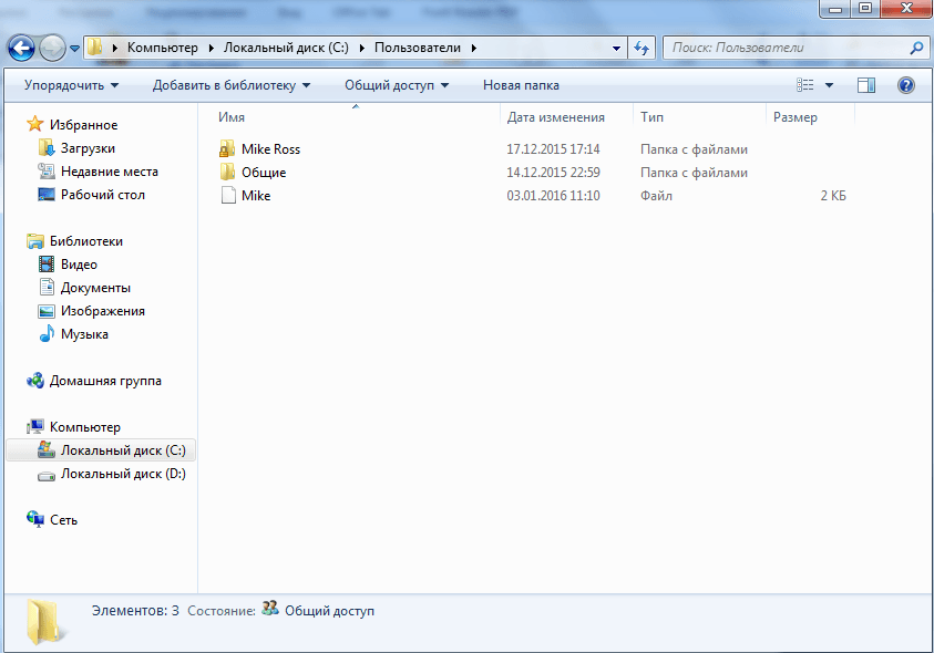 Откройте «Компьютер» — «Локальный диск (С:)» и перейдите в «Пользователи».