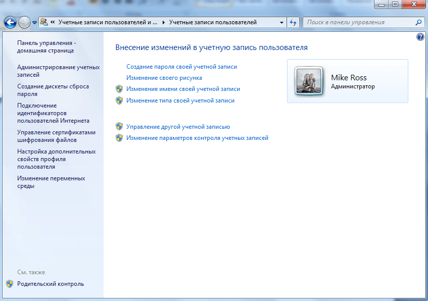 Изменяем учетную запись
