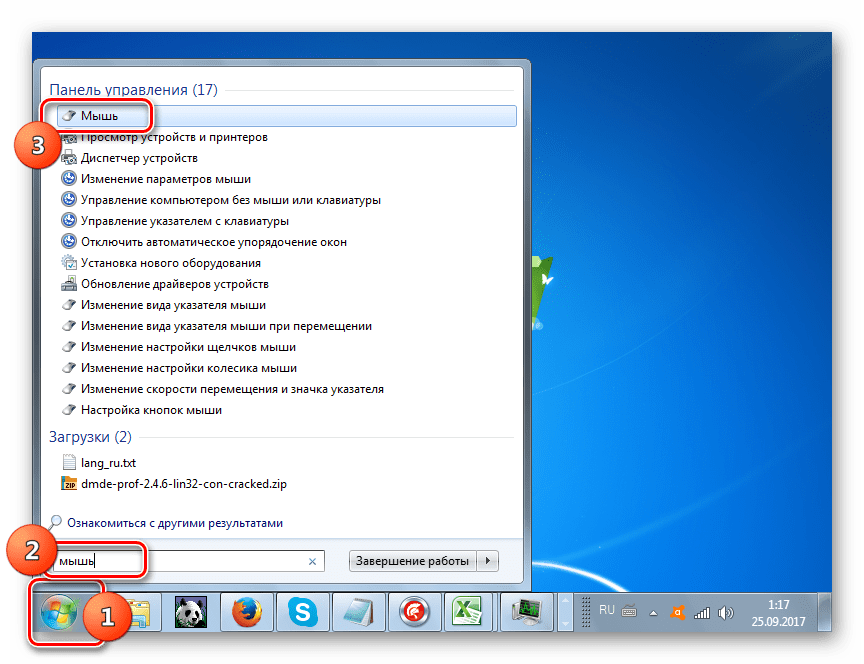 Для тех пользователей, которые не привыкли перемещаться по дебрям «Панели управления», есть и более простой метод перехода в окошко свойств мышки. Кликните «Пуск». В поле поиска вбейте слово: