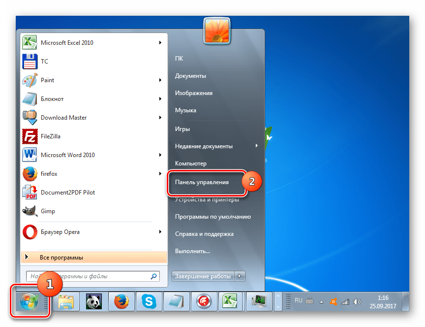 - Щелкайте «Пуск». Войдите в «Панель управления».