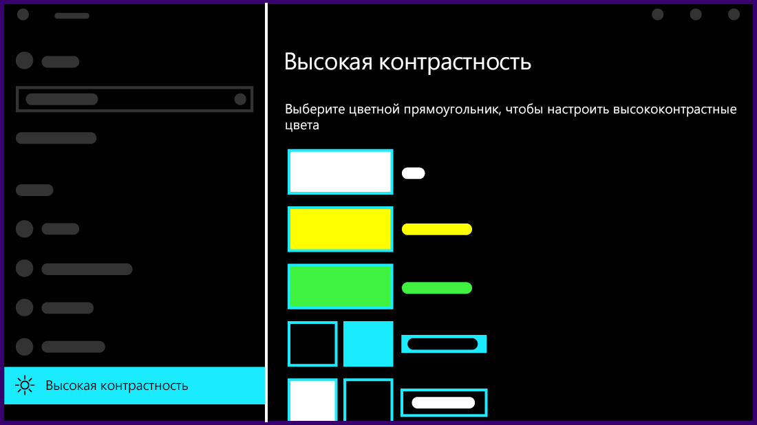 Выберите кнопку Пуск, а затем Параметры > доступ >высокая контрастность.