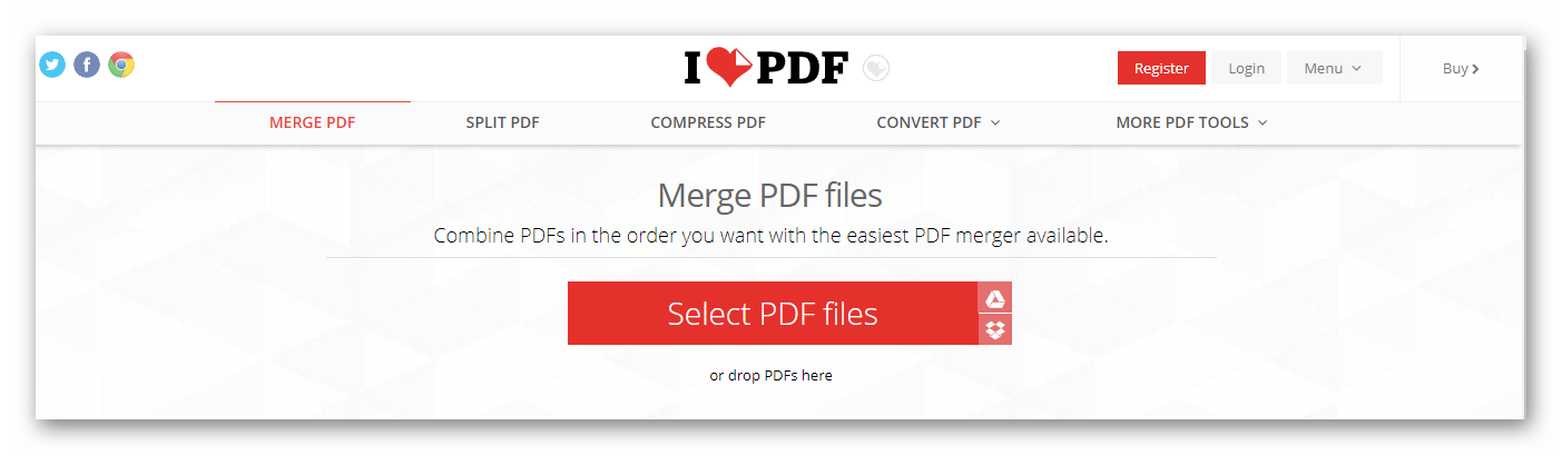 Онлайн сервис PDF2Go предназначен для работы с файлами PDF. На сервисе имеется функция для объединения нескольких файлов в один ПДФ файл, сайт работает на русском языке.