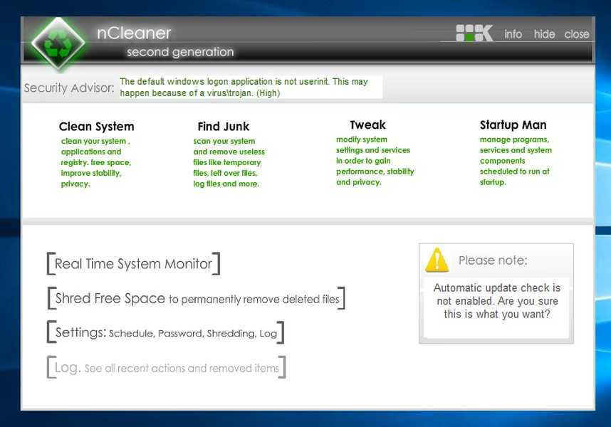 nCleaner дает возможность следить за тем, какие приложения используют системные ресурсы с указанием объема. Имеет функцию вывода подробной статистики и создания копий удаляемых файлов.