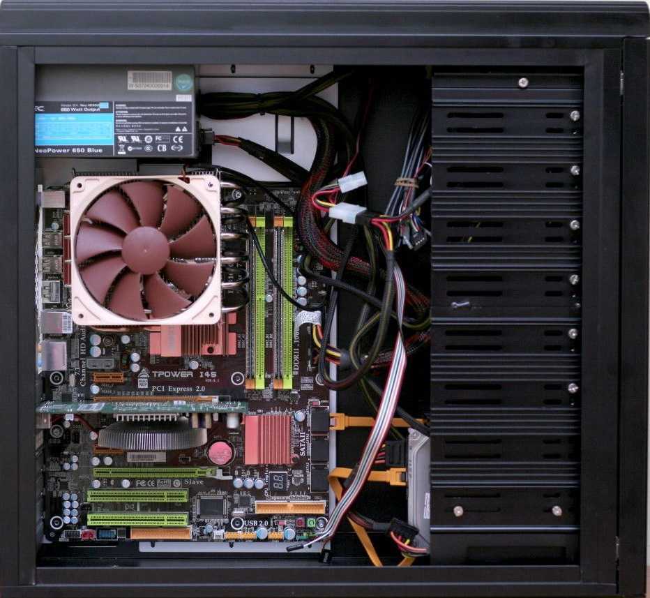 Вдруг компьютерное устройство не включается, возникла проблема аппаратного типа, тогда единственным вариантом станет снятие крышки корпуса. Заглянув во внутрь можно увидеть много пыли, которая закрывает все надписи, обозначения. Следует сначала аккуратно очистить. В некоторых случаях предстоит отсоединить другие модули (оперативную память, адаптер видео), поскольку они могут ограничивать обзор.