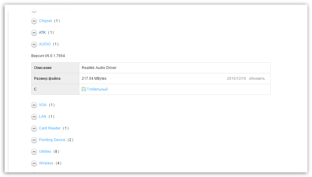 В результатах поиска вам потребуется пройти на страницу вашего ноутбука, а затем открыть раздел с дополнительным программным обеспечением и драйверами, указав свою версию операционной системы (разрядность тоже имеет значение). В разделе с драйверами вы, скорее всего, не найдете драйвера конкретно для микрофона, поэтому вам потребуется загрузить аудио-драйвера, которые, как правило, и включают в себя драйвер для встроенного микрофона вашего ноутбука.