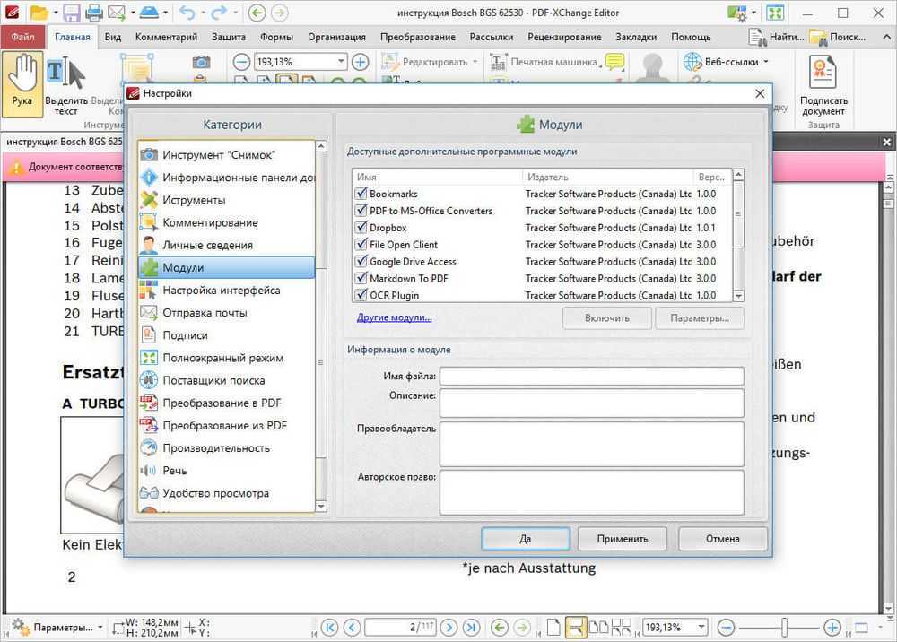 Некоторые функции, которые видны в меню и панели инструментов, доступны только в платной версии программы (PDF-XChange Editor Plus), но вы можете навести мышь на иконку, чтобы выяснить доступна ли она.