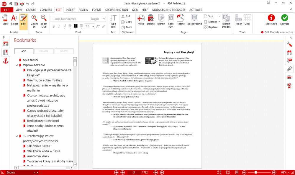Программа изменяет и удаляет текст, изображения, добавляет ссылки и т.п., позволяет защитить отредактированный файл (запретить копирование контента или поставить пароль).