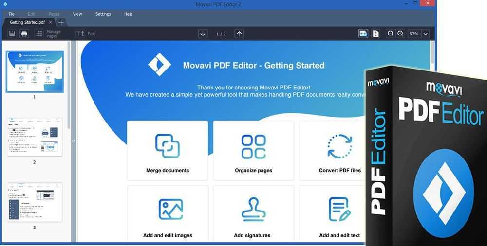 Эффективный и многофункциональный инструмент с удобной навигацией. Позволяет не только добавлять, редактировать и форматировать текст с картинками, но и ставить электронную подпись, объединять несколько файлов в один или разбивать его на части, извлекать картинки, конвертировать из JPG, PNG, BMP.