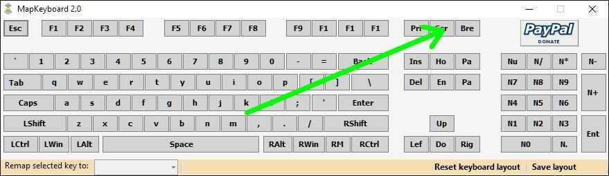 Определившись, переходим непосредственно к процессу замены. Сначала в окне MapKeyboard кликаем клавишу, запланированную выступать в качестве замены, пусть это будет Scroll Lock.