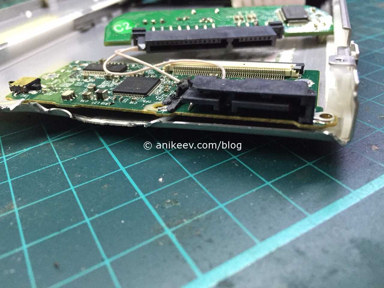 Сначала нужно распотрошить бокс для диска и извлечь оттуда плату-переходник с USB на SATA. Каждая модель разбирается по разному, общих советов тут не дам. Нам нужна только плата, остальное можно выбросить.
