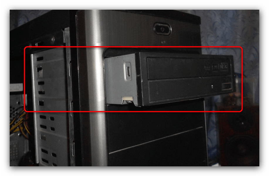 Изнутри корпуса, вставить оптический привод, может помешать блок питания. Однако, если этот компонент расположен в нижней части корпуса, то и проблем с установкой не возникнет.