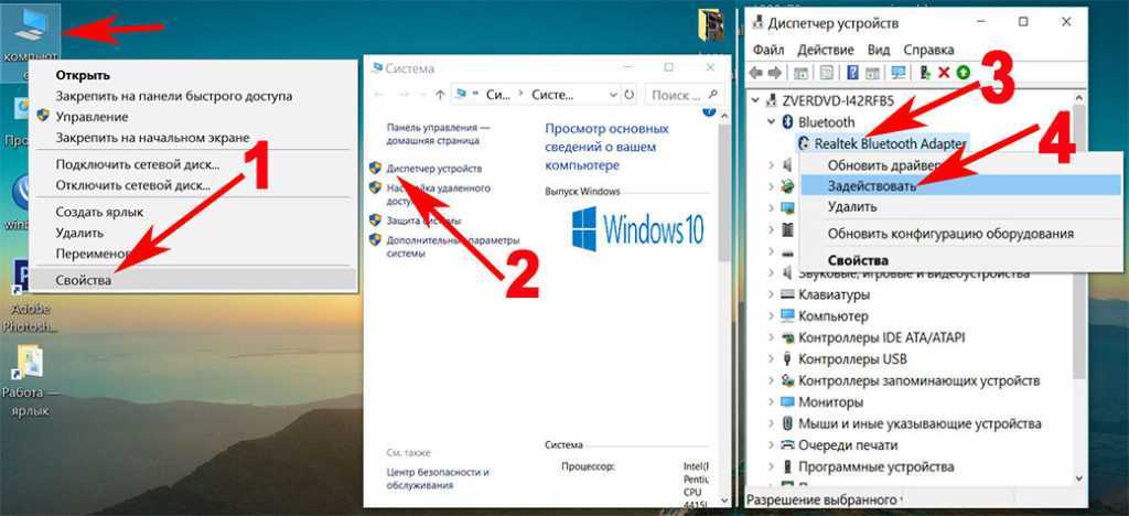 Если адаптер Bluetooth у вас отключен, тогда активируйте его в «Диспетчере устройств». Вдруг не получится, тогда читайте статью: все способы включения блютуз на ноутбуке Windows 7 и Windows 10