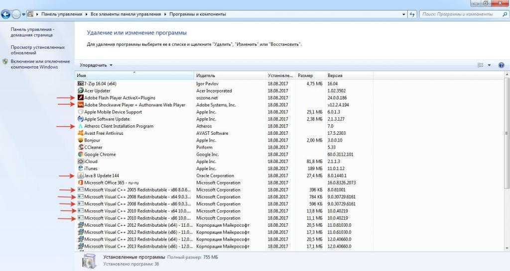 Для начала зайдите в раздел программ и компонентов и посмотрите, что есть в списке. Не спешите удалять ненужные приложения, поскольку встроенные деинсталляторы самой операционной системы или установленных программ после выполнения стандартной процедуры могут оставлять кучу мусора. Это и ключи реестра, и файлы, и каталоги. Все это придется чистить вручную.