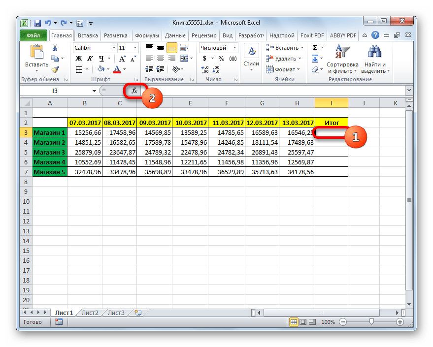 - Выберите пустую ячейку, в которую будет вписана сумма.