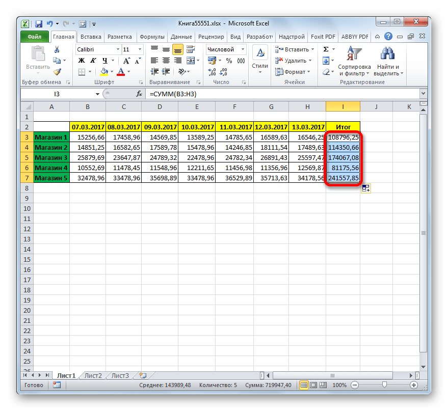 Гораздо более быстрым способом сложить данные в строчке является применение автосуммы.