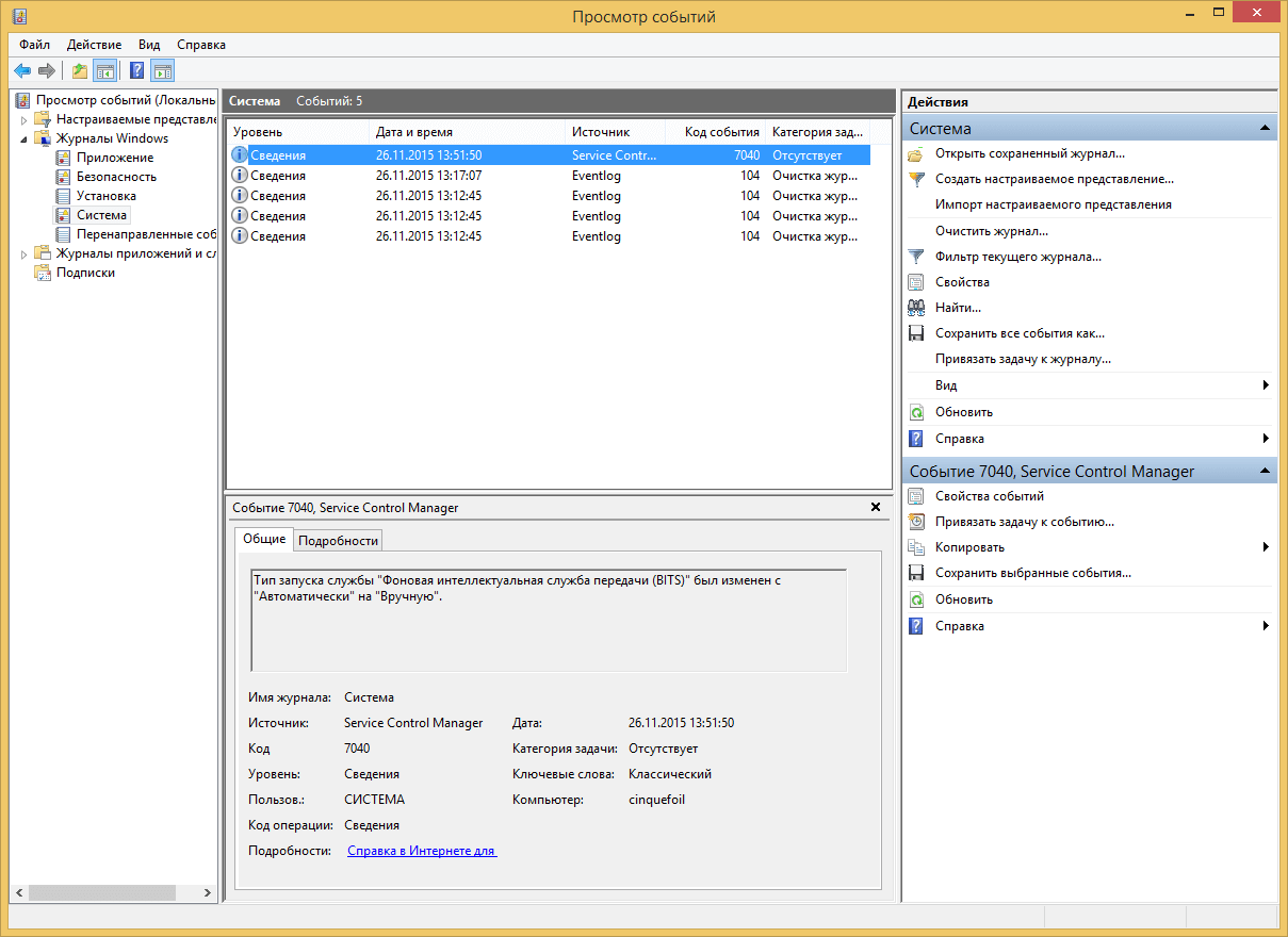Эта служба управляет событиями журнала событий. Она поддерживает регистрацию и запрос событий, подписку на события, архивацию журналов и управление метаданными событий. После перезапуска компьютера изменения вступят в силу
