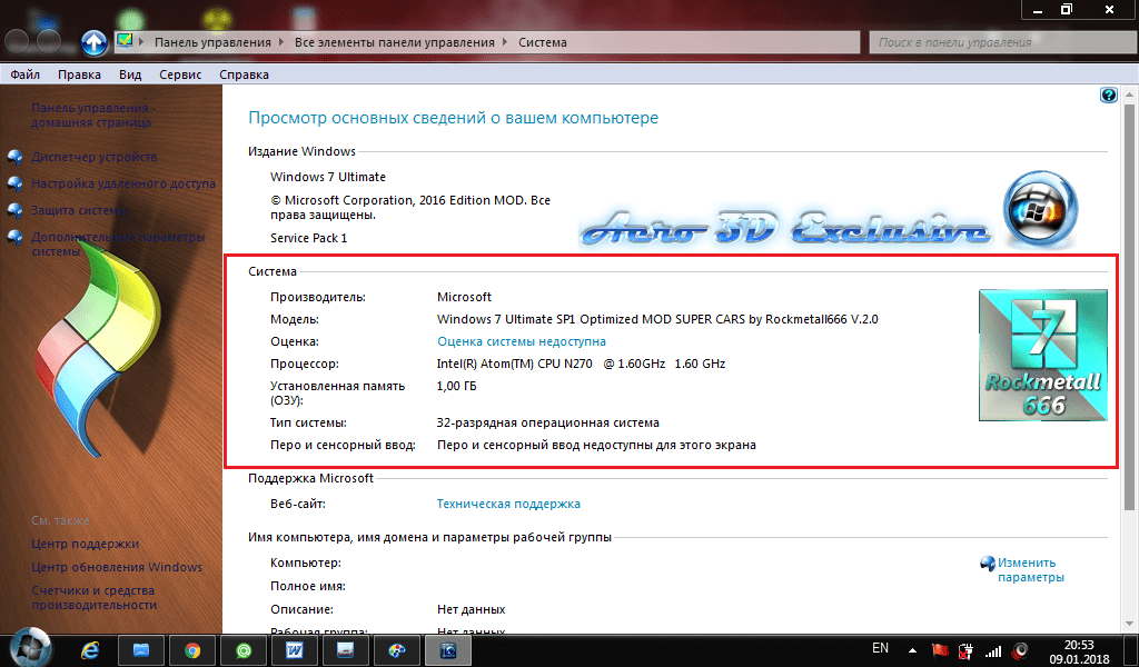 Как посмотреть параметры компьютера для операционной системы windows 7
