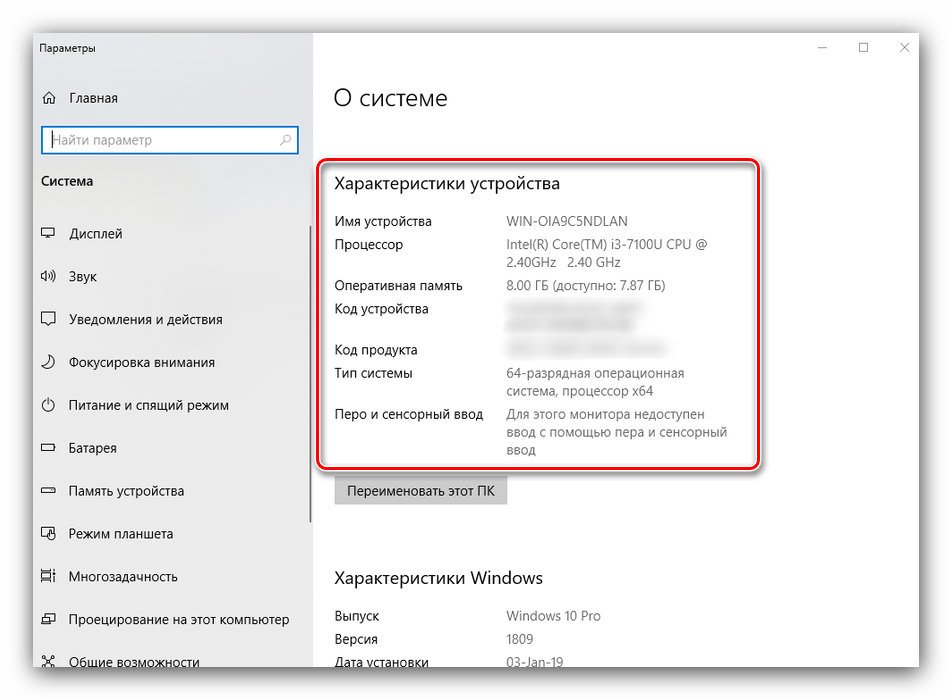 Все без исключения версии редмондской ОС имеют встроенный функционал просмотра параметров компьютера. Конечно, эти инструменты не предоставляют таких подробностей, как сторонние решения, но сгодятся начинающим пользователям. Отметим, что нужная информация рассредоточена, поэтому потребуется задействовать несколько решений для получения полноценных сведений.