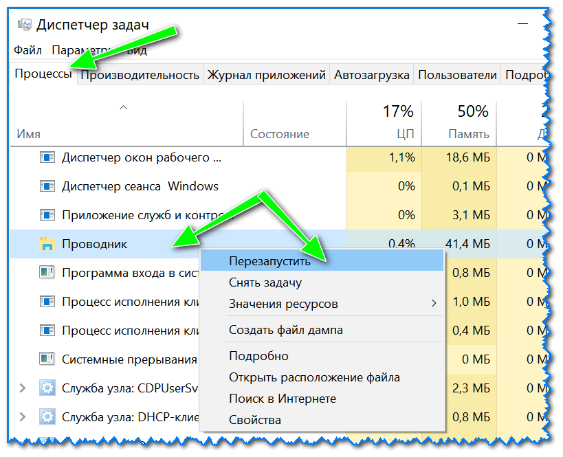 Один из способов для «оживления» Windows — перезапуск Проводника. Проводник Windows является не только файловым менеджером, в операционной системе он отвечает, в том числе, за отображение Рабочего стола и Панели задач.