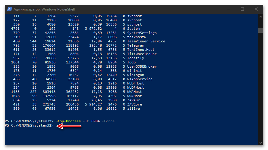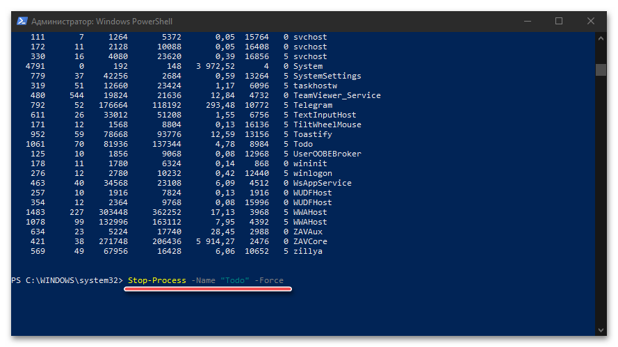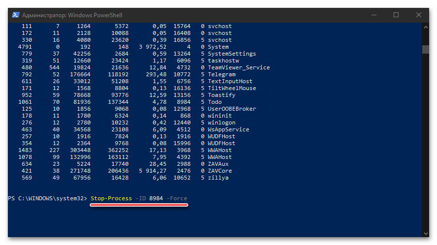 Примечание. Чтобы завершить процесс с повышенным уровнем, вам нужно открыть PowerShell в качестве администратора.