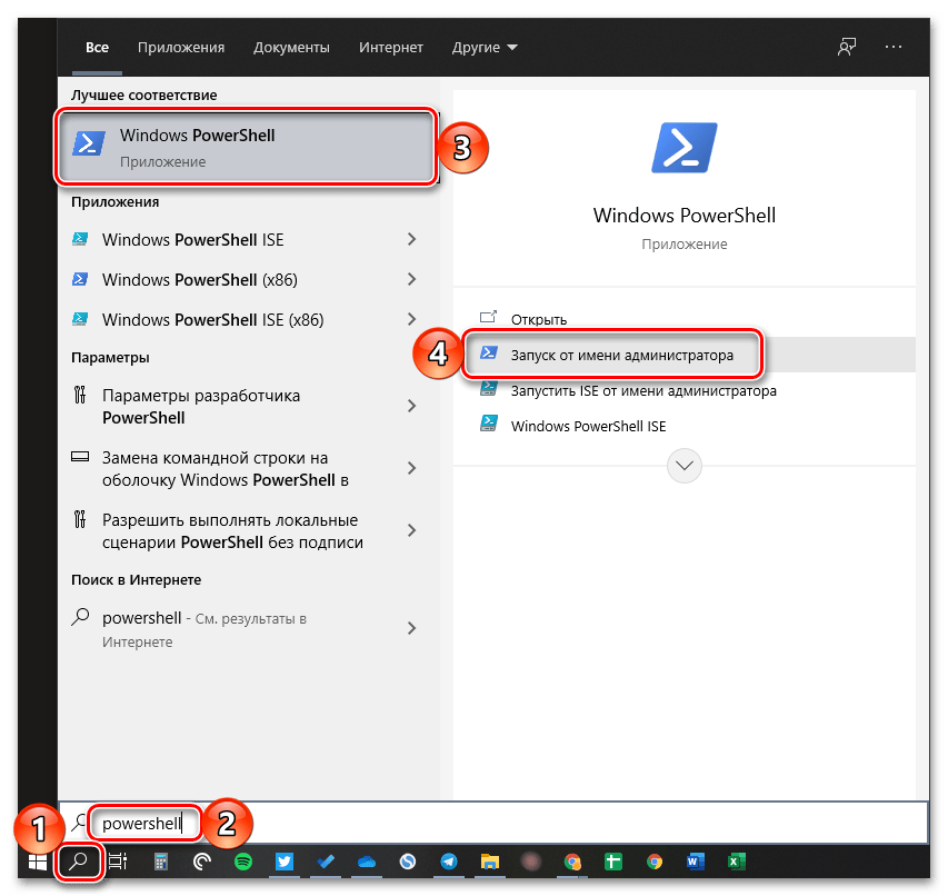 - Откройте «PowerShell» от имени администратора. Проще всего это сделать с помощью поиска.
