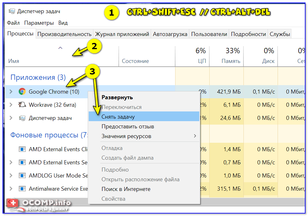 Ctrl+Shift+Esc или Ctrl+Alt+Del — открыть диспетчер задач