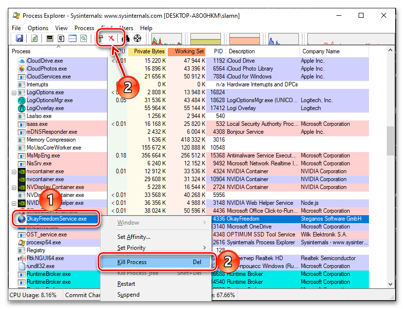 Process Explorer хоть и кажется менее привлекательным и удобным в использовании, чем «Диспетчер задач», во многих случаях является более эффективным решением, так как позволяет останавливать даже те процессы, которые не отображаются или не могут быть остановлены системными средствами. Данная программа также предоставляет подробные сведения о загруженности ОС, а еще одним ее преимуществом является портативность.