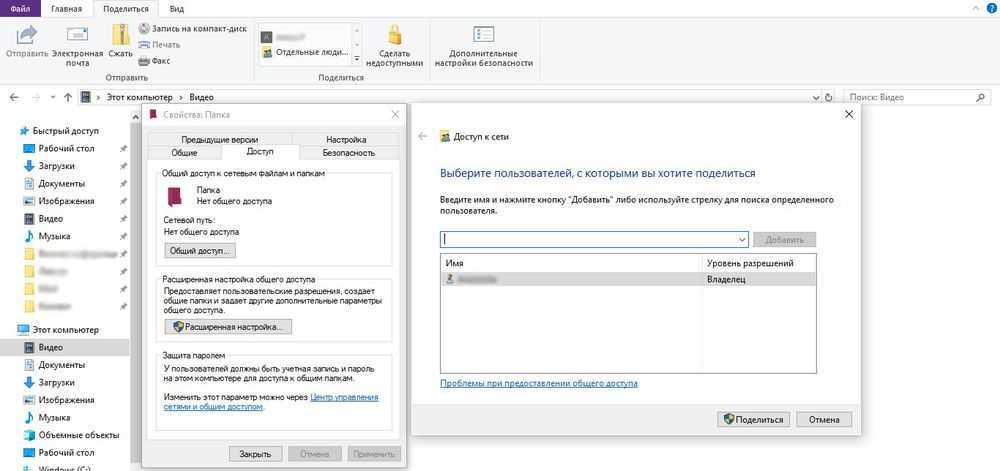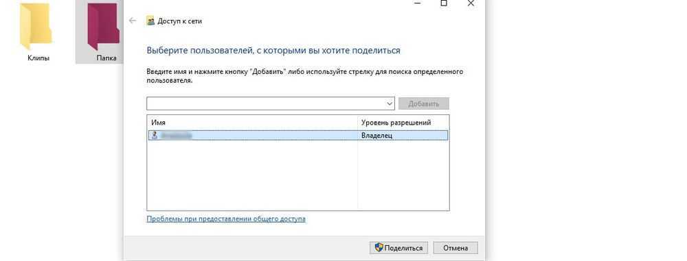 Из списка выбрать пользователя, разрешение для него (например» «Чтение и запись») и поделиться доступом.