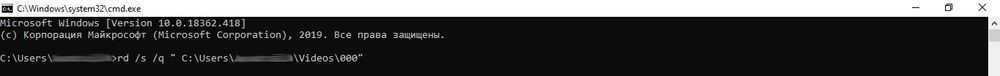 - Написать «RD /s/q «…»» или «RMDIR /s/q «…»» без кавычек, где RD и RMDIR – команды удаления, /s – удаление каталога со всем содержимым, /q – удаление без подтверждения, «…» – путь к удаляемому файлу. «Enter».