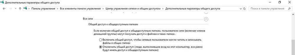 - Прокрутить страницу вниз до раздела «Все сети». Включить общий доступ для пользователей.