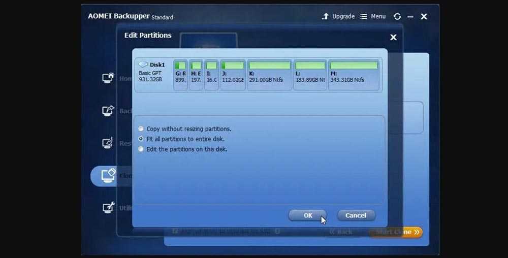 «Fit partition to entire disk» — означает, что размер системного раздела будет изменен сообразно объему SSD. Чтобы понять, как это работает, разберем конкретный пример.