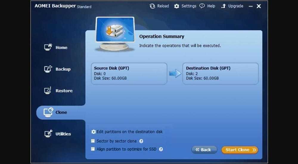 - утилита не позволяет самостоятельно выбрать, какие именно разделы необходимо клонировать.