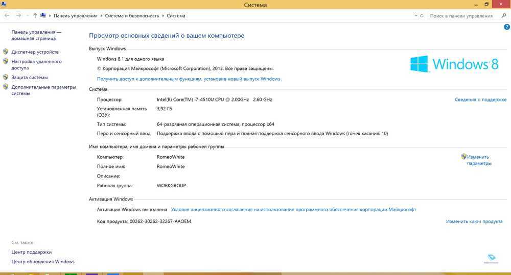 Свойства системы или просмотр основных сведений о вашем компьютере