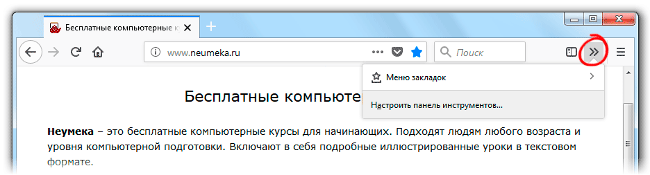- Открыть панель управления функциями веб-браузера, используя кнопку, которая находится с лева от кнопок «Свернуть» и «Закрыть».