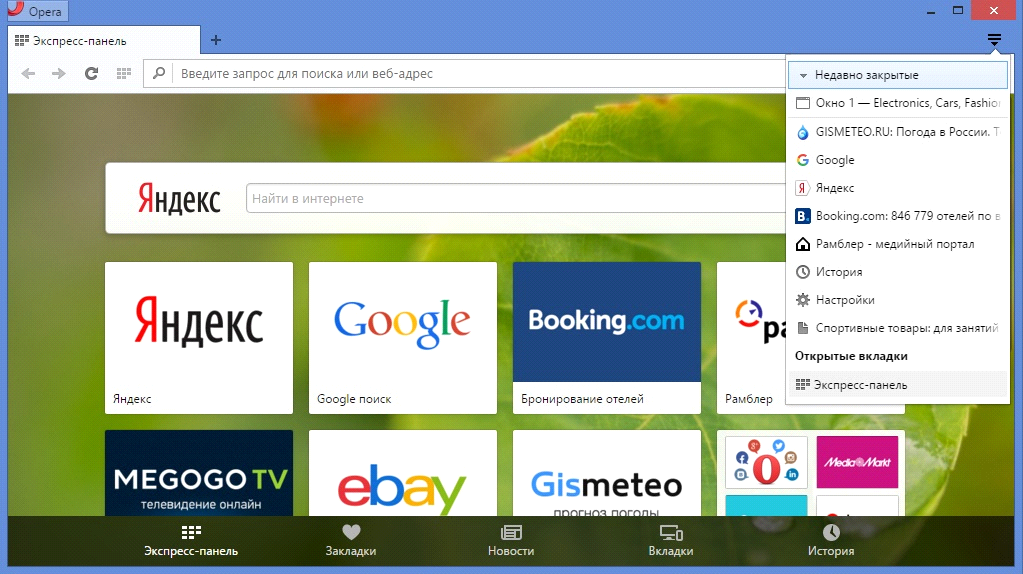 - Экспресс-панель – это главная страница Оперы, которая открывается в новой вкладке (пример).