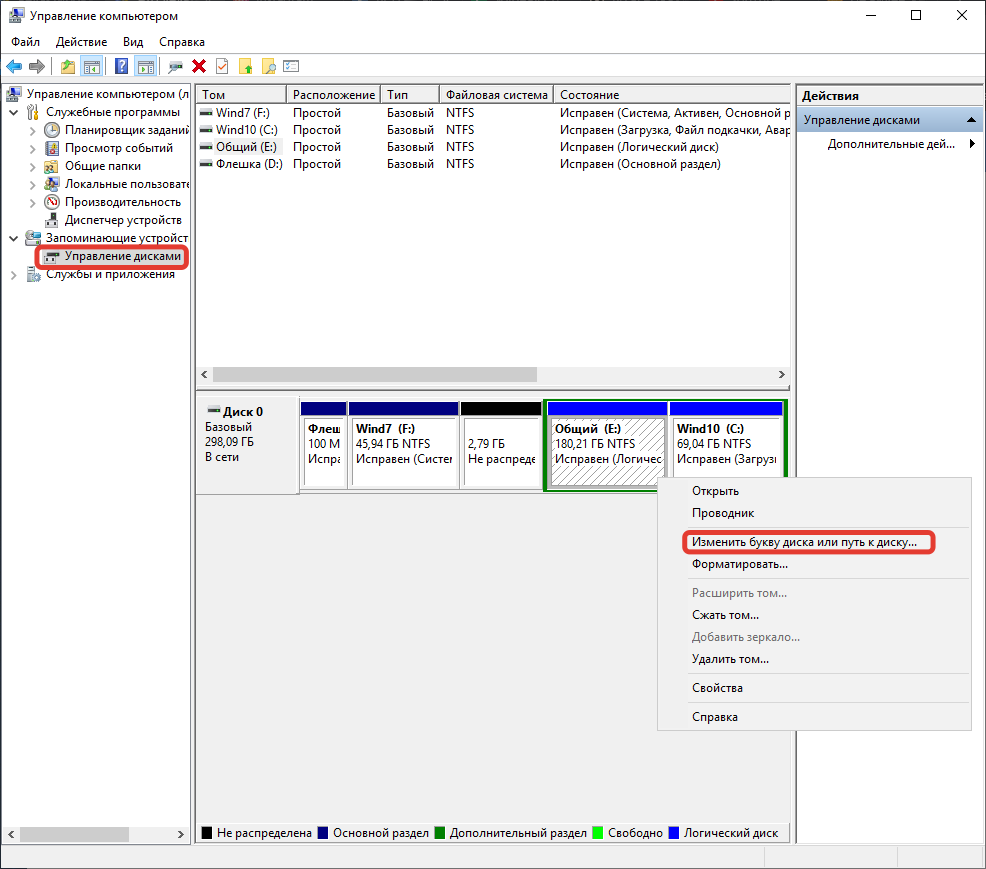 Отображение тома на Виндовс 10 можно включить, используя возможности утилиты Управление дисками. Для этого стоит выполнить следующие действия: