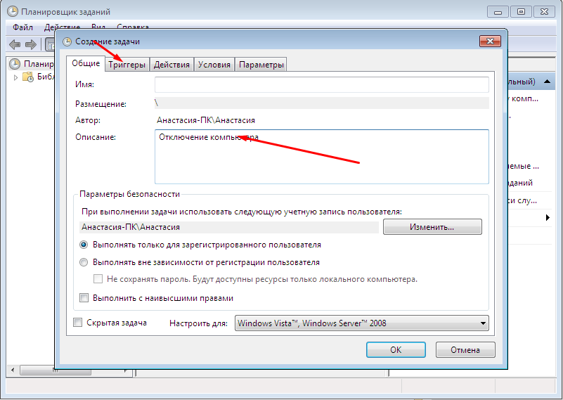 Осталось выбрать название файла. Для удобства назовем его «Запланированное выключение компьютера».