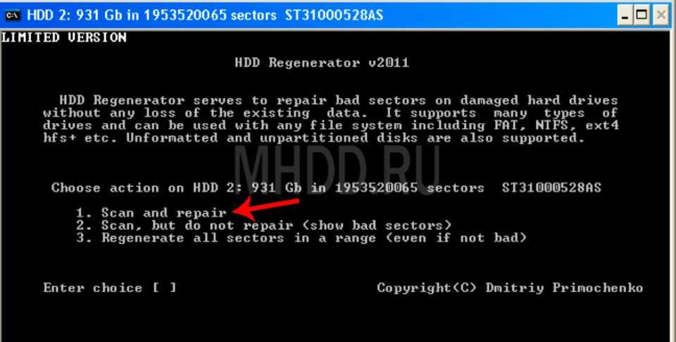 - Лечение физических бэд секторов — проход программой HDD Regenerator 2011