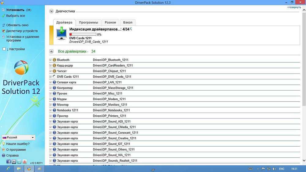 DriverPack Solution, куда же без него. Это сборник наиболее часто встречающихся драйверов. Всех драйверов. Чем новее версия — тем больше новых драйверов в ней присутствует. Сборник очень тяжёлый. На момент написания статьи полный сборник весит около десяти гигабайт, хотя есть и версия с загрузчиком, что определяет драйверы, которых не хватает, и скачивает только их.
