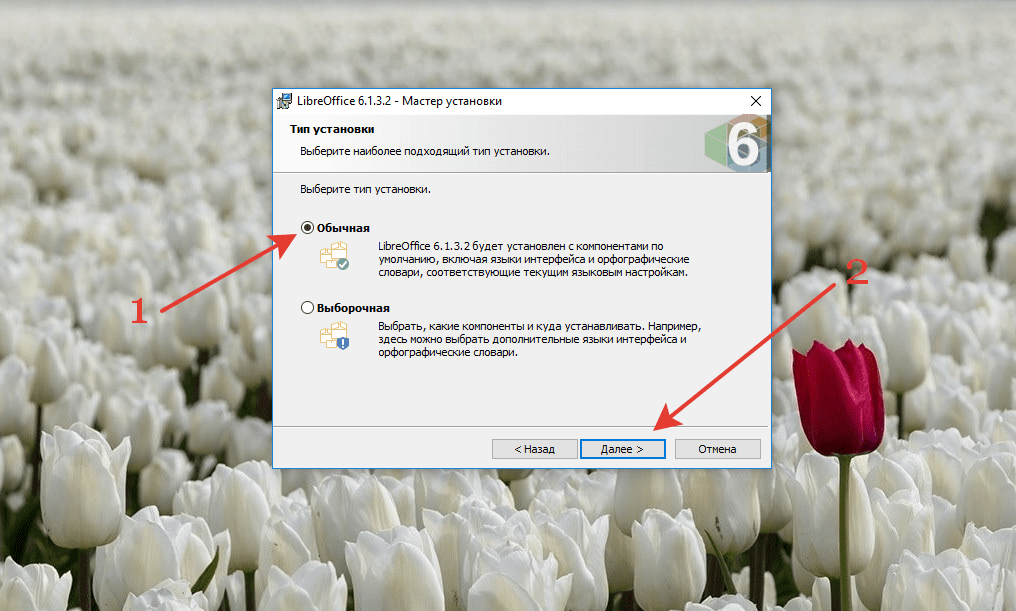 4. Следующий шаг – выбор подходящего типа установки. Если с компьютерами вы общаетесь на уровне не очень уверенного пользователя, то выбирайте «Обычный». Если есть желание и возможности поковыряться во внутренностях программы, тогда