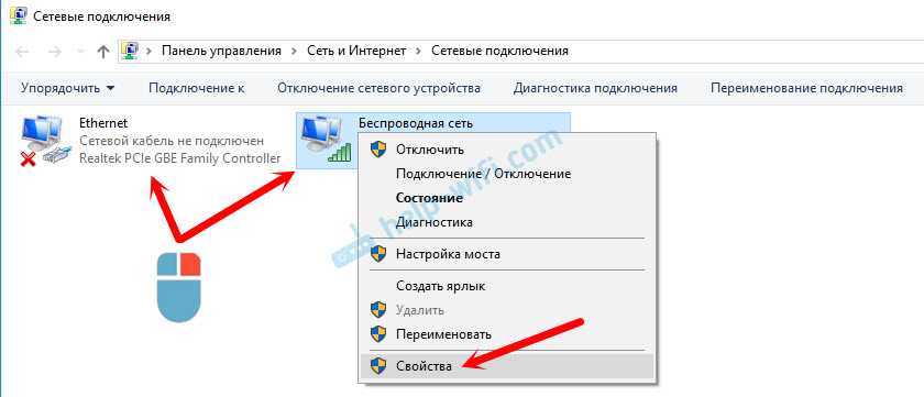 , и выбираем «Свойства». Для примера, я открыл свойства адаптера «Беспроводная сеть» (подключение по Wi-Fi)