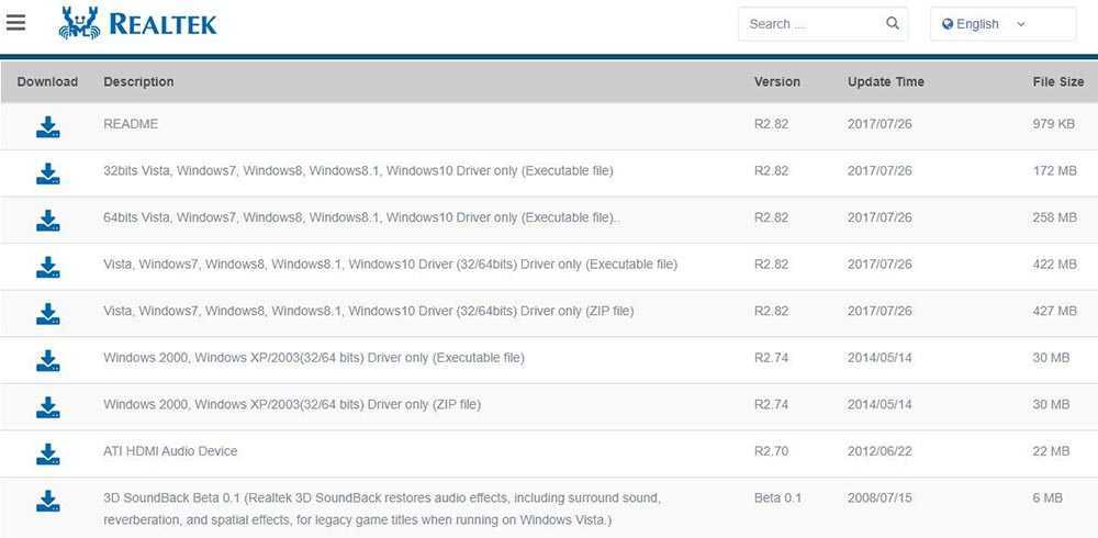 Если Realtek HD Audio для Windows 10 не установлен по умолчанию, придется скачивать программу самостоятельно.